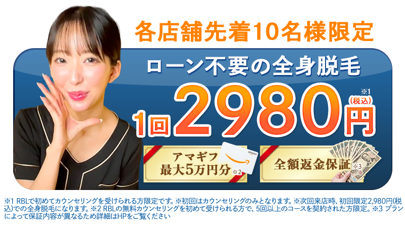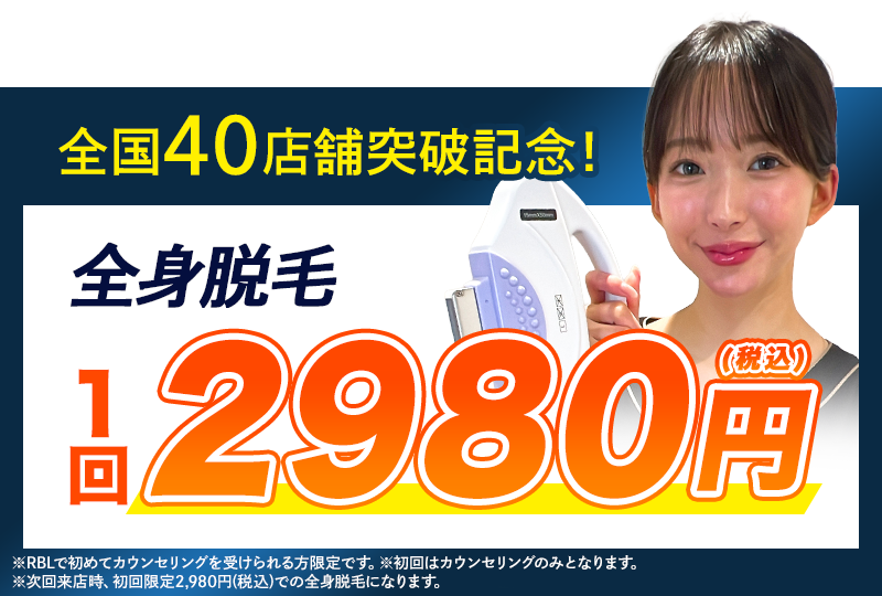 ※次回来店時、初回限定2,980円(税込)での全身脱毛になります。