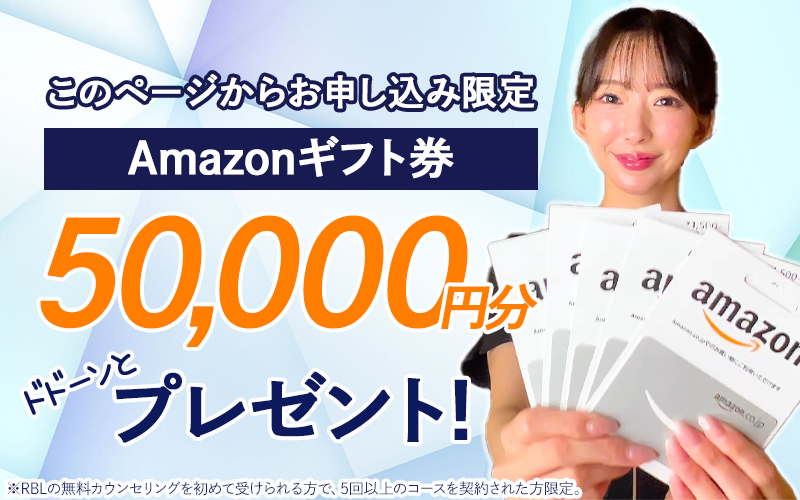 ※RBLの無料カウンセリングを初めて受けられる方で、5回以上のコースを契約された方限定。